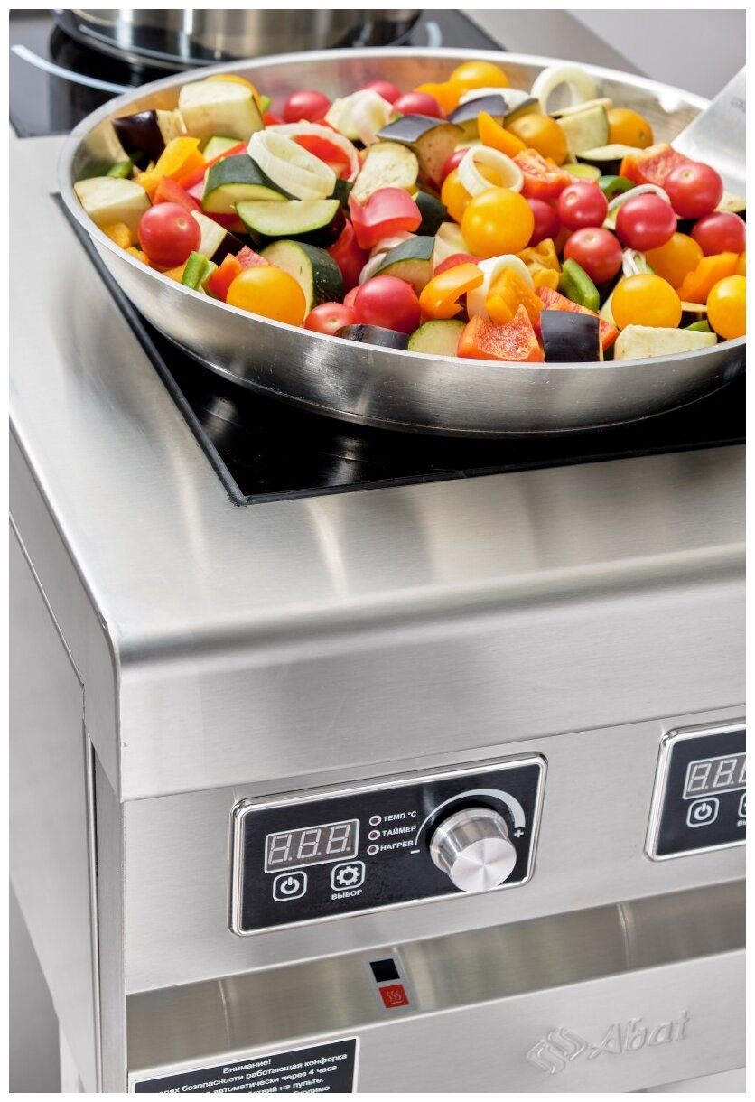 2 independent induction modules; smooth 9-position power regulator; glass-ceramic surface thickness 6 mm; maximum allowable load on the heating zone - 25 kg; allowable diameter of dishes 115-300 mm; detergents