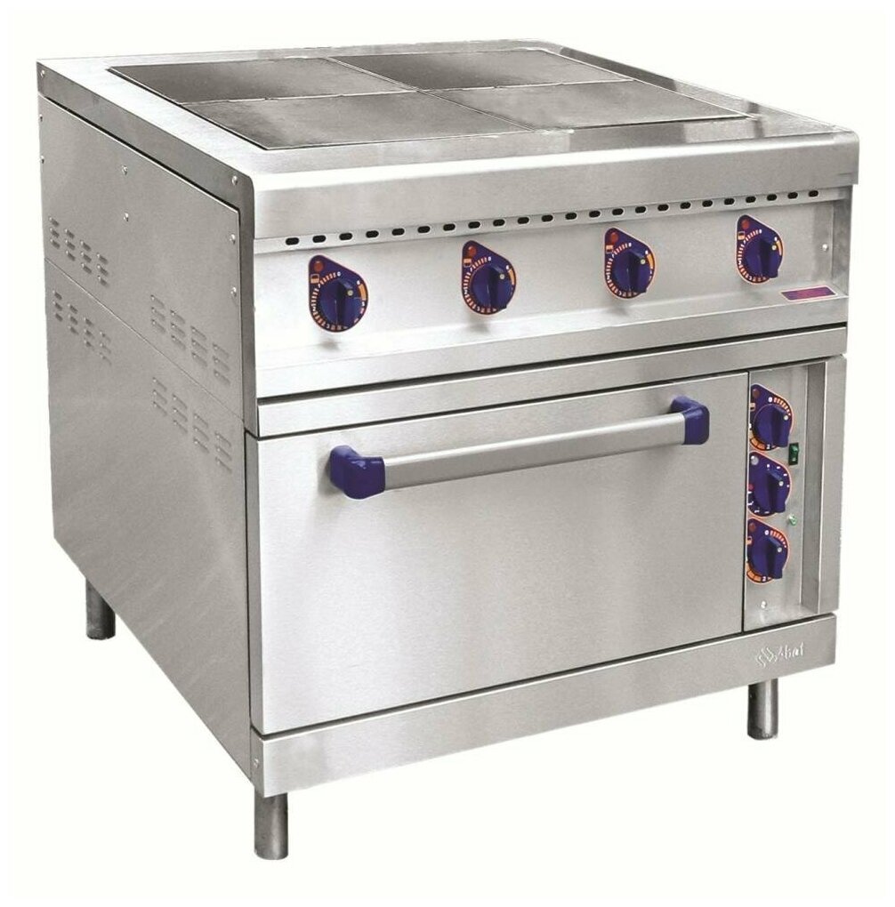 Type: electric, number of burners: 4, shape of burners: rectangular, worktop material: cast iron, oven type: electric, installation: floor, oven volume: 111.55 l, burner area: 0.36 m²