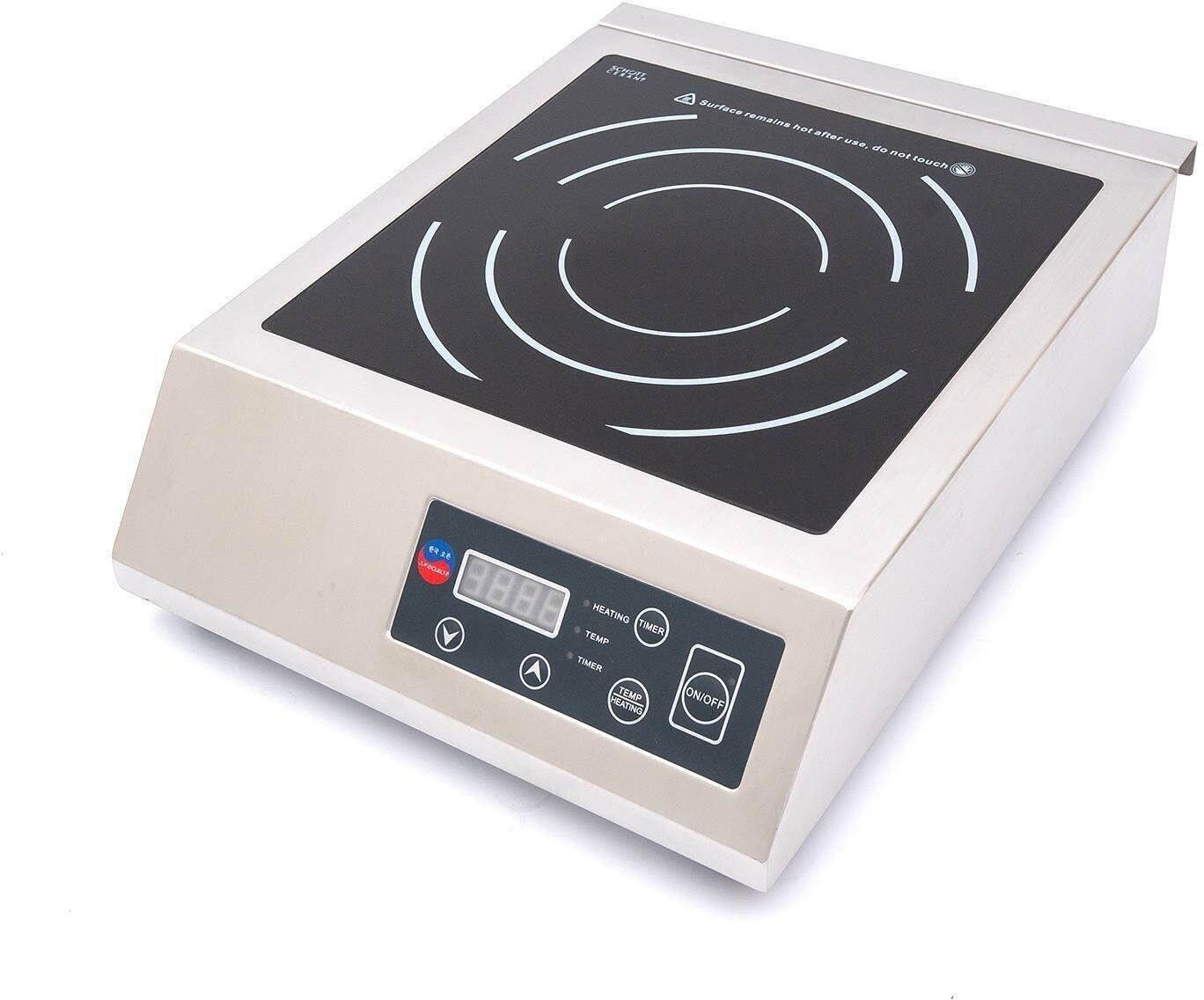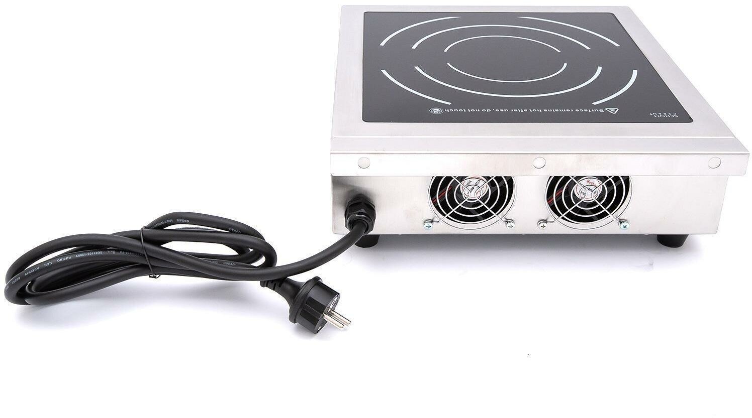 Stainless steel body, burner size: 285x285 mm, removable filter, electronic overheating protection, cookware presence sensor, 10 power levels 0.5-3.5 kW, LED display, 10 temperature levels 60-240 ºС in steps of 20 ºС, timer 0-180