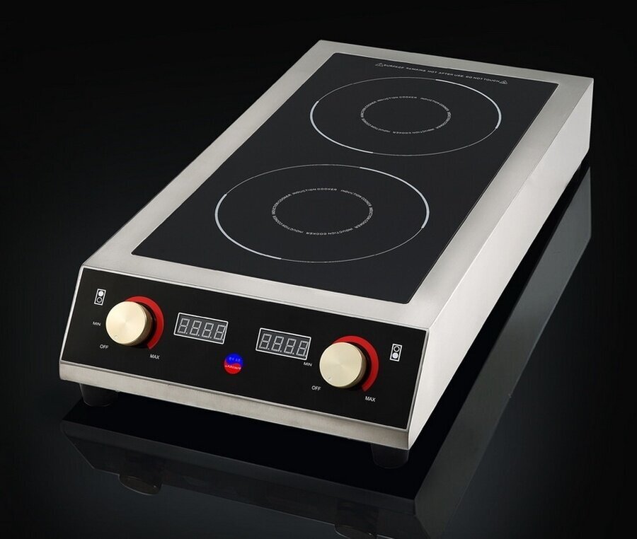 LED power level display; 10 power levels 500-3500W; separate adjustment of burners; stainless steel body