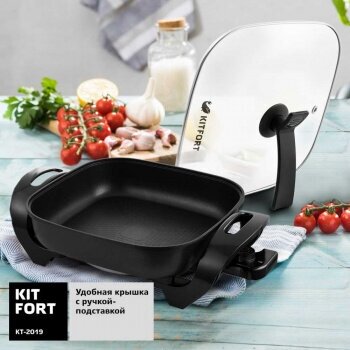 Electric frying pan Kitfort KT-2019, lid, power cord with thermostat, documentation