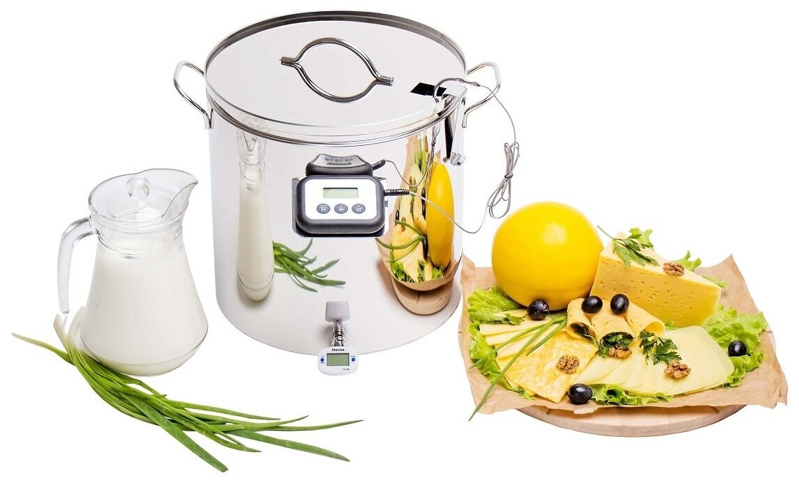 Cheese dairy building; lid; cheese dairy temperature sensor timer/thermometer; electronic thermometer probe temperature sensor with wire for connection to a timer/thermometer 1 pc.; clip-holder for; immersion probe 1 pc.; elek