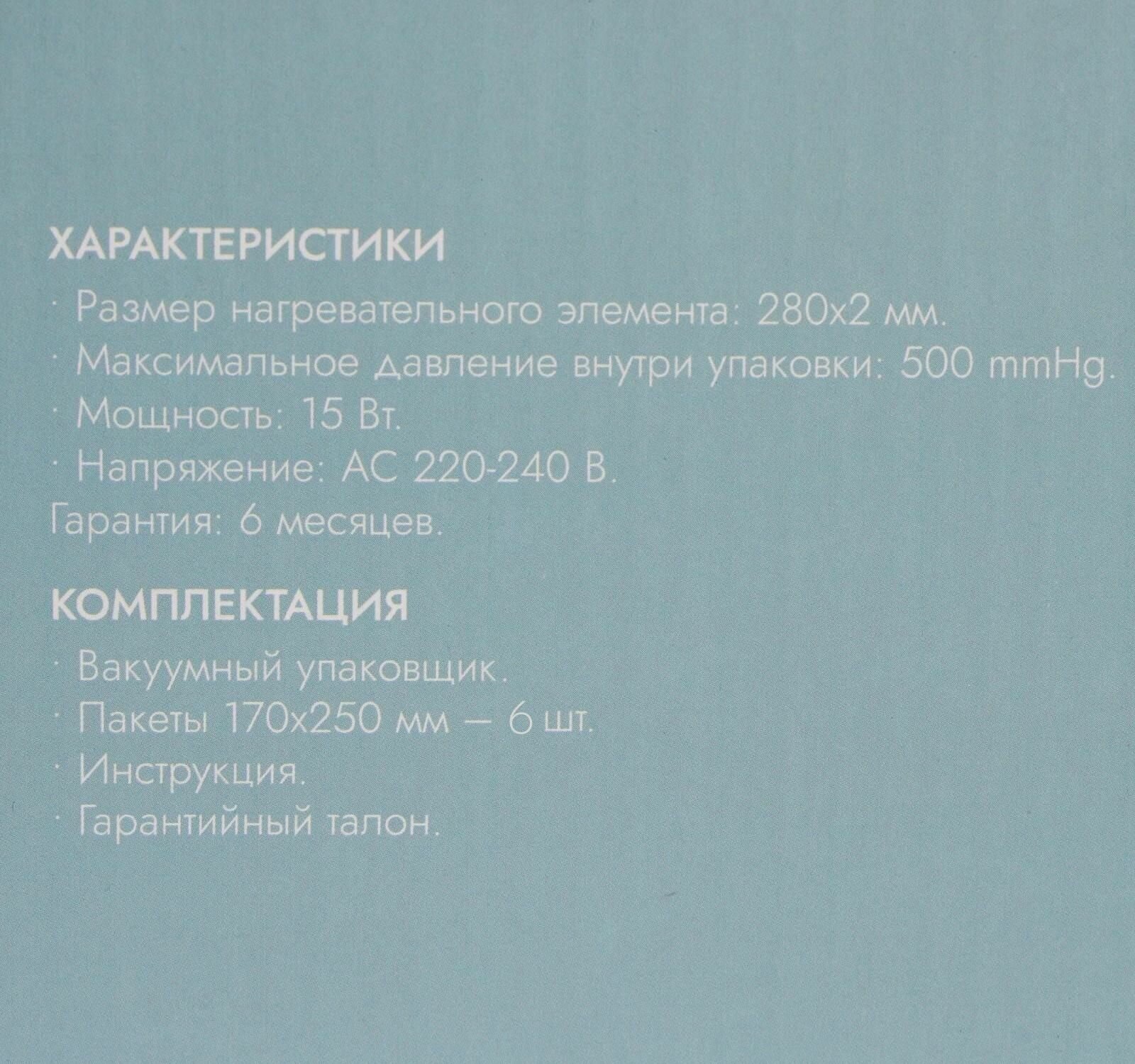 Vacuum sealer LuazON LPS-02, 15 W, 6 bags, 220V, 25 cm, turquoise 4353490