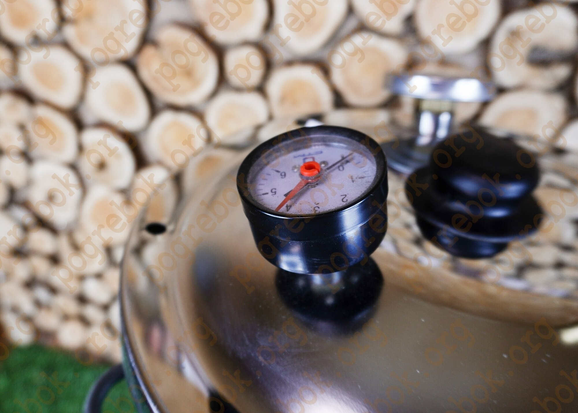Autoclave tank 26 liters with a ferromagnetic bottom, autoclave lid, thermometer, pressure gauge, pressure relief valve, silicone gasket, metal eyebolts, cassettes for cans - 3pcs, water drain valve.