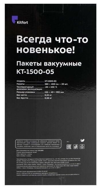 Device type: vacuum sealer, device manufacturer: Kitfort, material: polyethylene