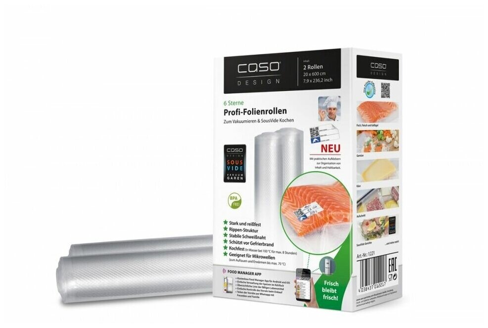 Device type: vacuum sealer, device manufacturer: Caso, material: polyethylene