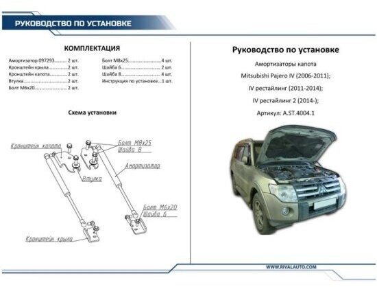 Hood damper RIVAL A.ST.4004.1 for Mitsubishi Pajero