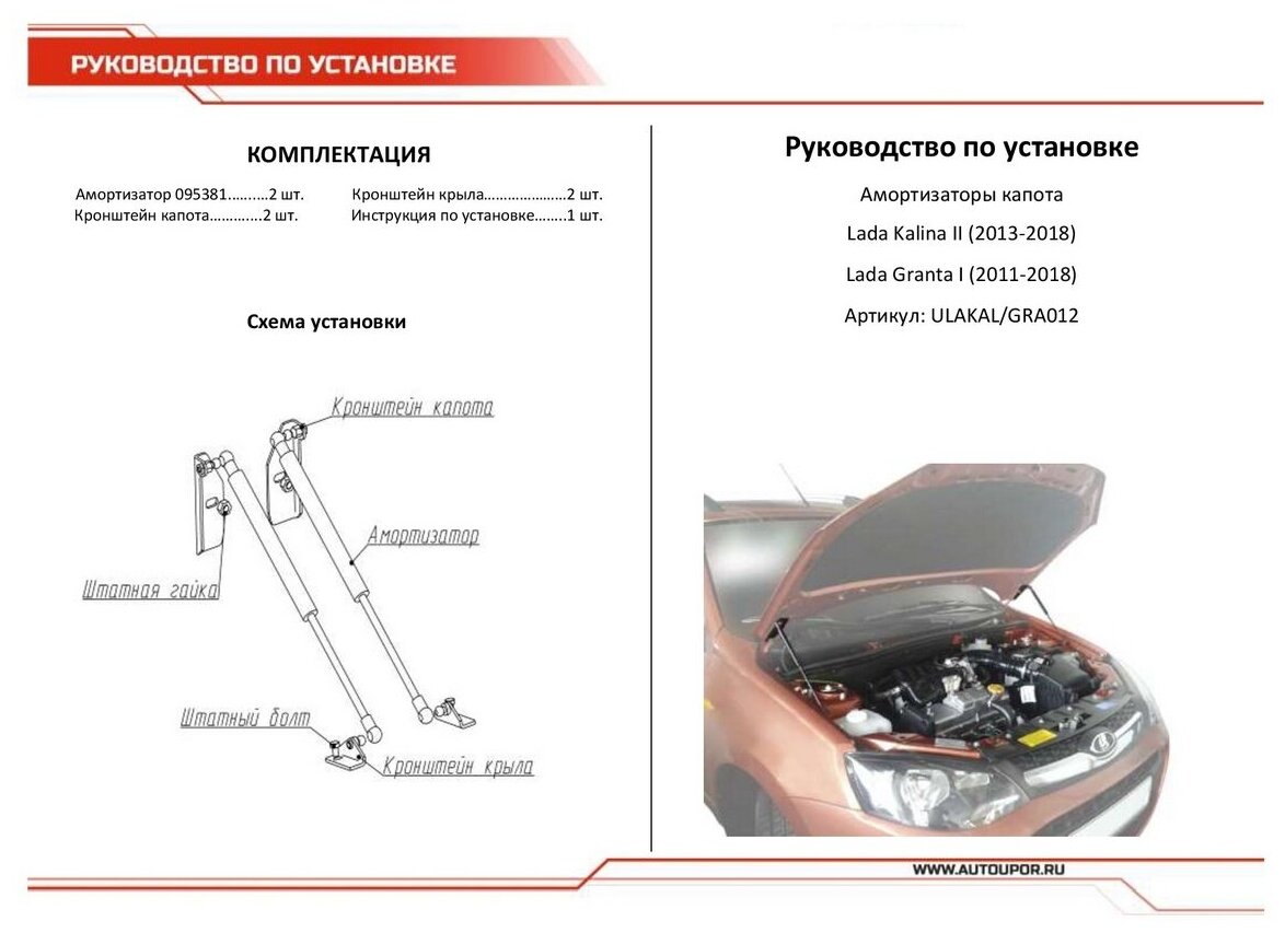 Vehicle type: cars, car model: LADA Granta, LADA Kalina, type: hood shock absorber, installation location: left, front, right