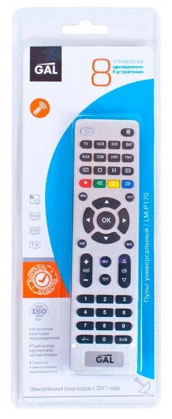 Remote control type: universal, signal transmission: IR, remote control setting: code entry