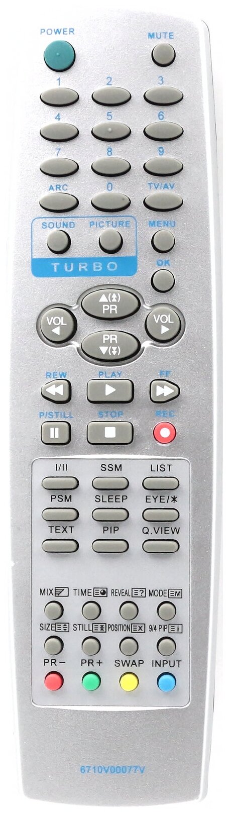 Remote control type: model, compatible device manufacturer: LG, compatible models: LG 6710V00077V, signal transmission: IR, Remote control setup: No setup, No setup required