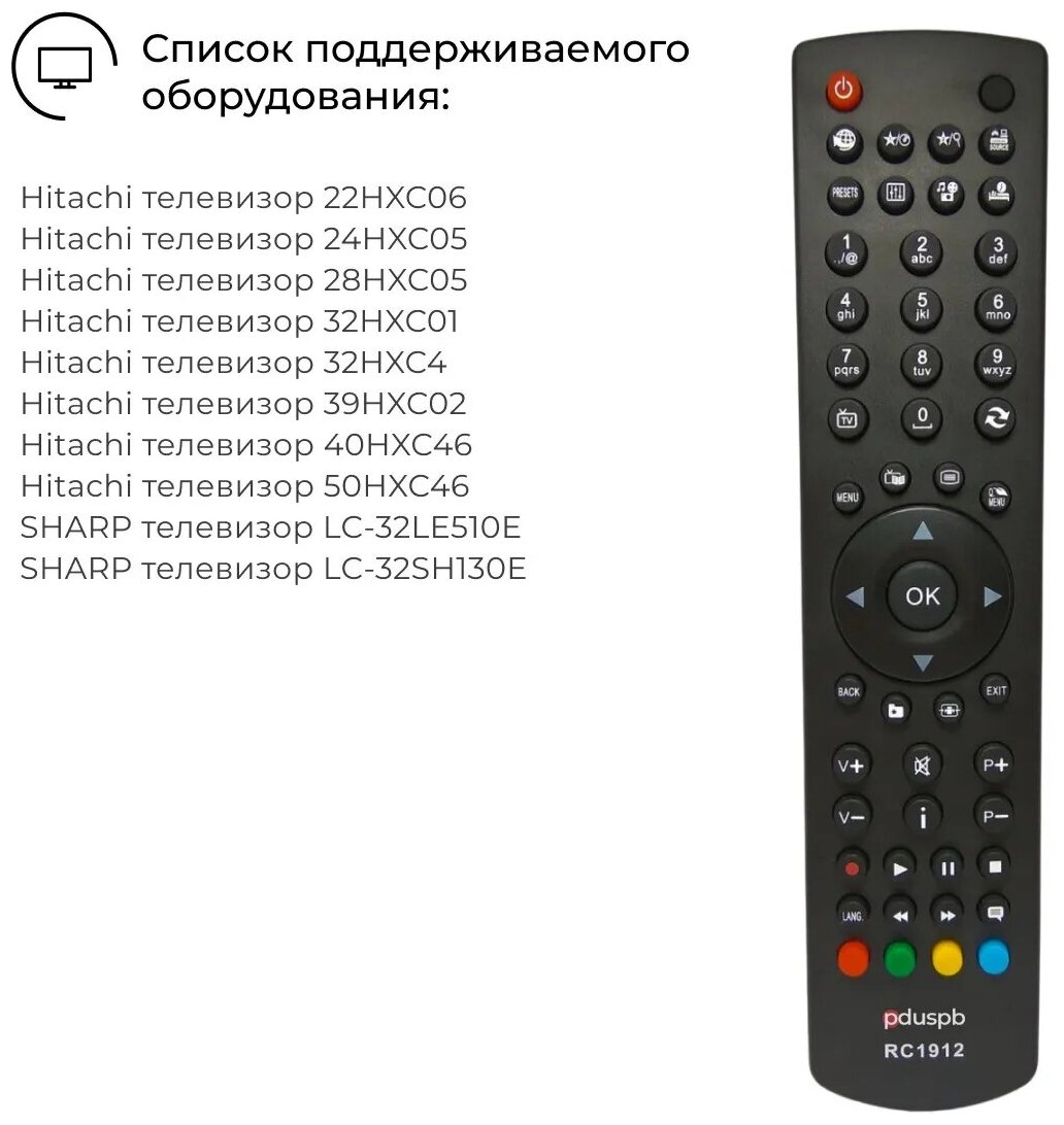 Attention! This RC1912 remote control is not universal. It is only compatible with TVs from the list of supported equipment! For a detailed list of supported hardware, see Destination. For your convenience, we