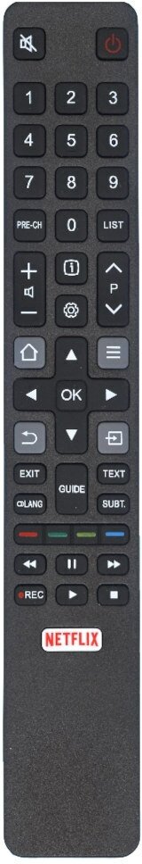Remote control type: model, compatible device manufacturer: TCL, signal transmission: IR, Remote control setup: No configuration required, options and kit: turn on and put the TV into standby mode, display a list of all