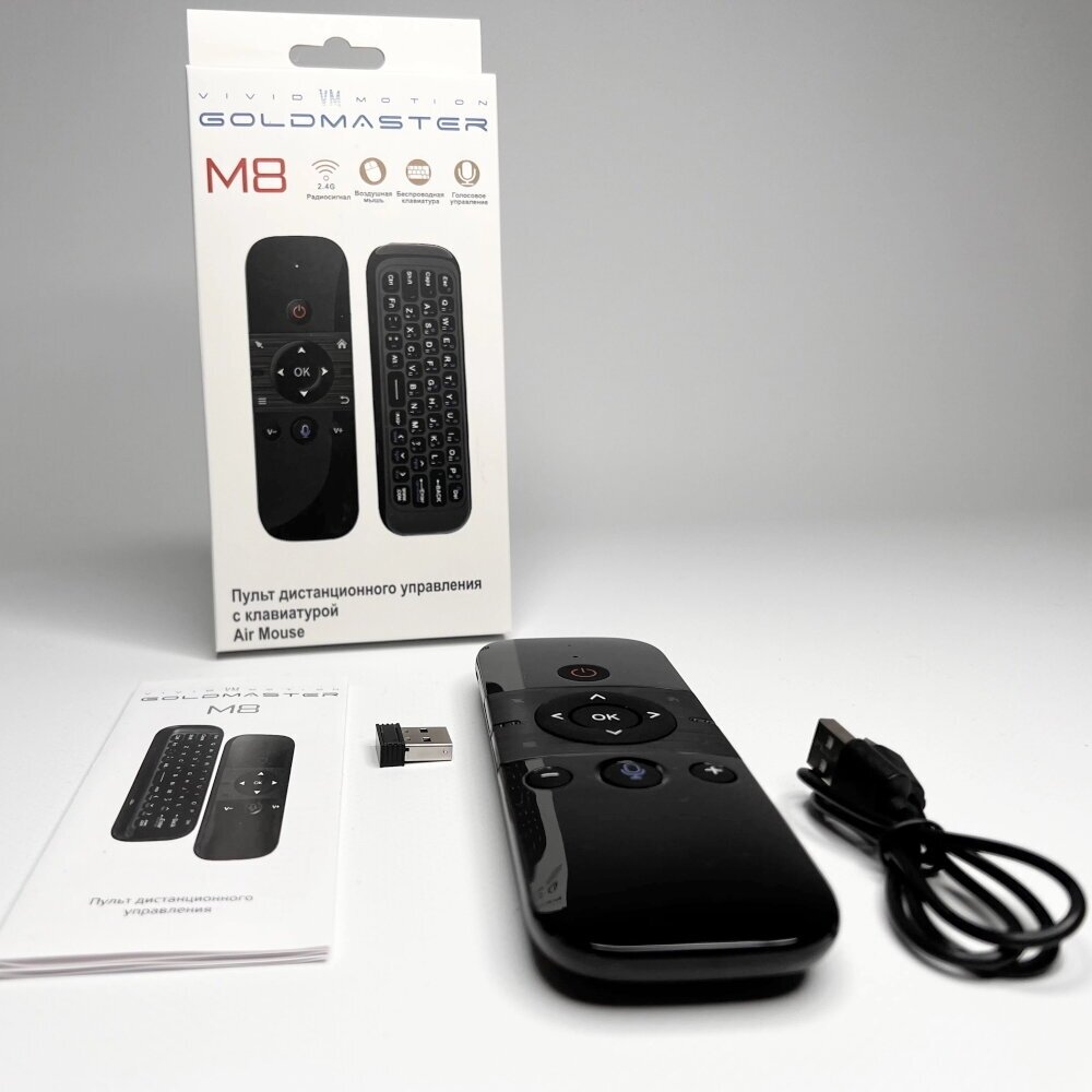 QWERTY keyboard, wireless transmitter included, gyroscope/accelerometer, voice control, touch control