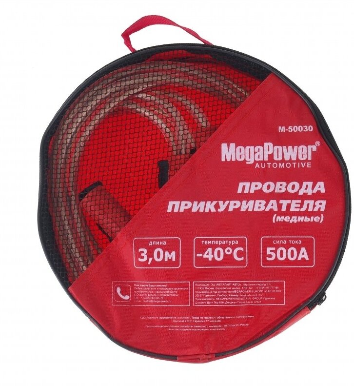 Starting wires MegaPower M-50030, 500A, 3 m