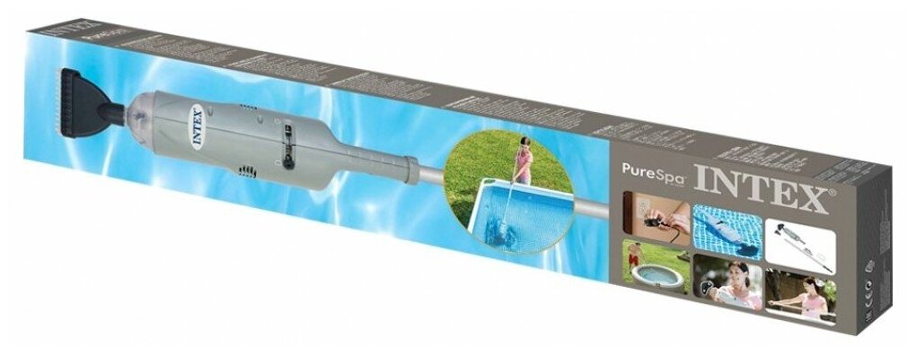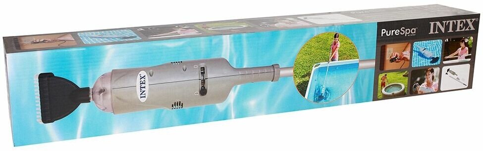 Detailed equipment: Pool vacuum cleaner with intex battery; two interchangeable brush heads; telescopic handle 236 cm; user manual; branded packaging