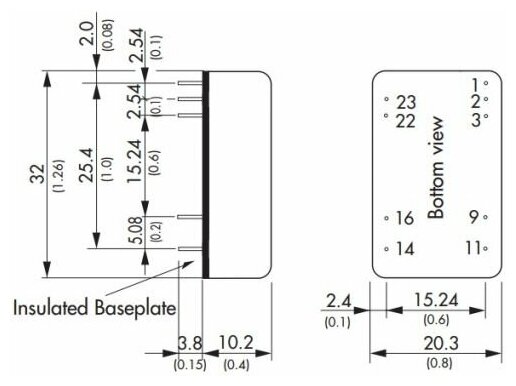 Converter DC-DC modular TRACO POWER TEN 8-1223 Mounting: on board, DIP24; P out: 8W; #: 2; U in: 9.18 V; Output: 15V, -15V; Features: DU