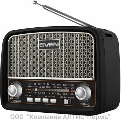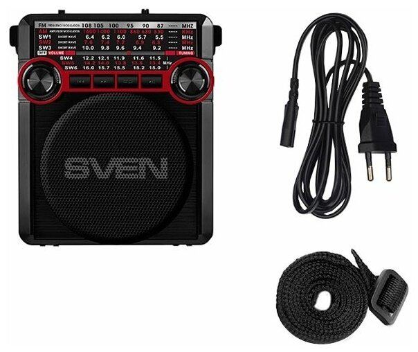 Built-in FM/AM/SW1-6 radio; 8-band radio receiver; music playback from USB flash, microSD and SD memory cards; telescopic rotary antenna; built-in battery; possibility of wired connection to the sound source