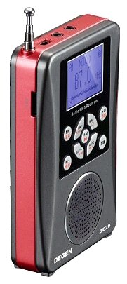 Type: pocket, frequency range: FM, HF, VHF, features: display, MP3 support, memory card support, headphone jack, with clock