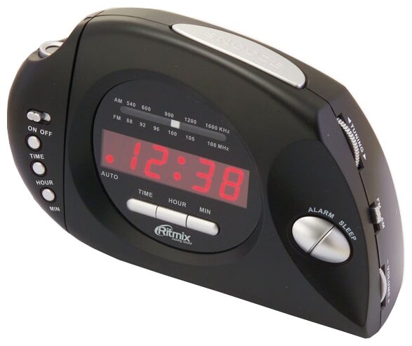Quartz stabilizer, time projector, 2 alarm/radio alarm modes, snooze alarm every 9 minutes, sleep timer