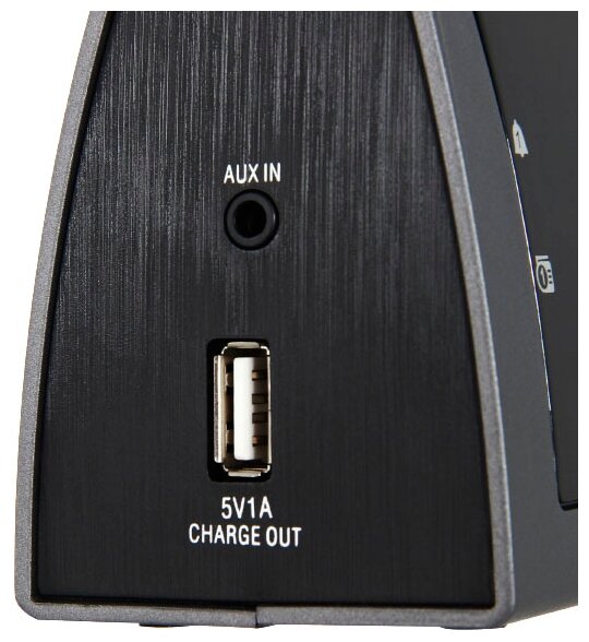 USB port for charging mobile devices, sleep timer, two alarms, snooze, batteries only for saving settings