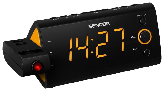 Type: radio alarm clock, frequency range: FM, features: display, projector, mains operation, with clock, thermometer