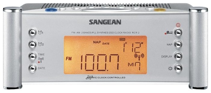 Radio time control, sleep timer, date, day of the week, time zones, radio/signal alarm