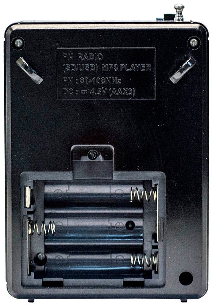Type: portable, frequency range: FM, features: USB flash drive interface, MP3 support, memory card support, headphone jack