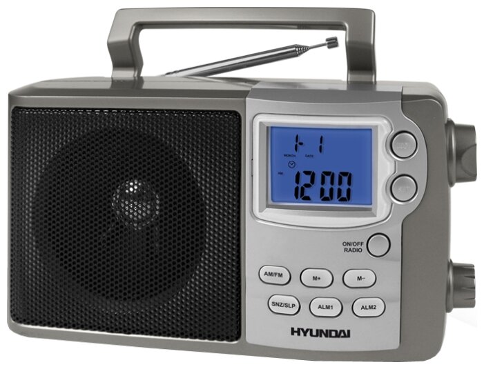 Automatic on/off, alarm clock, telescopic antenna, folding handle