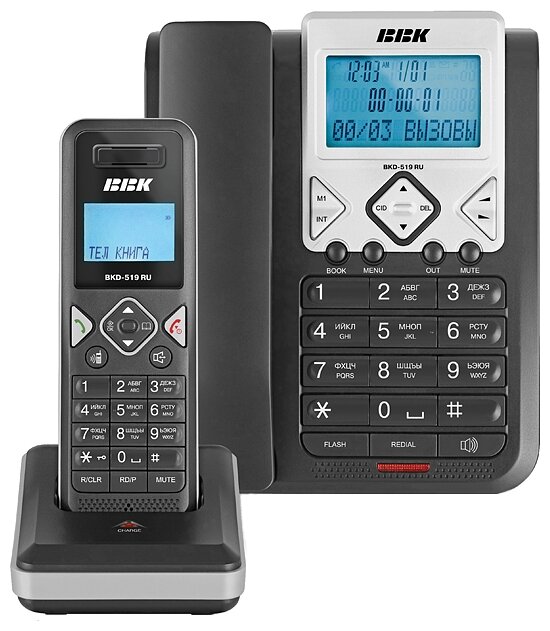 On the base unit, on the handset monochrome with backlight