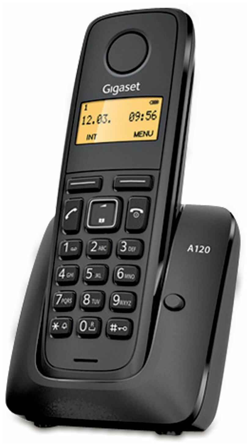 GIGASET A120, memory for 40 numbers, caller ID, snooze, clock, black