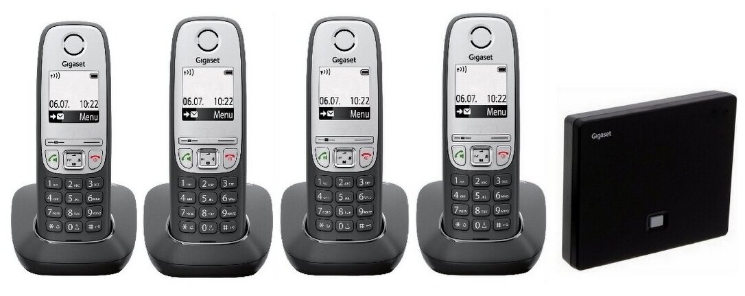 With separate base Gigaset A415 black 4 tubes included