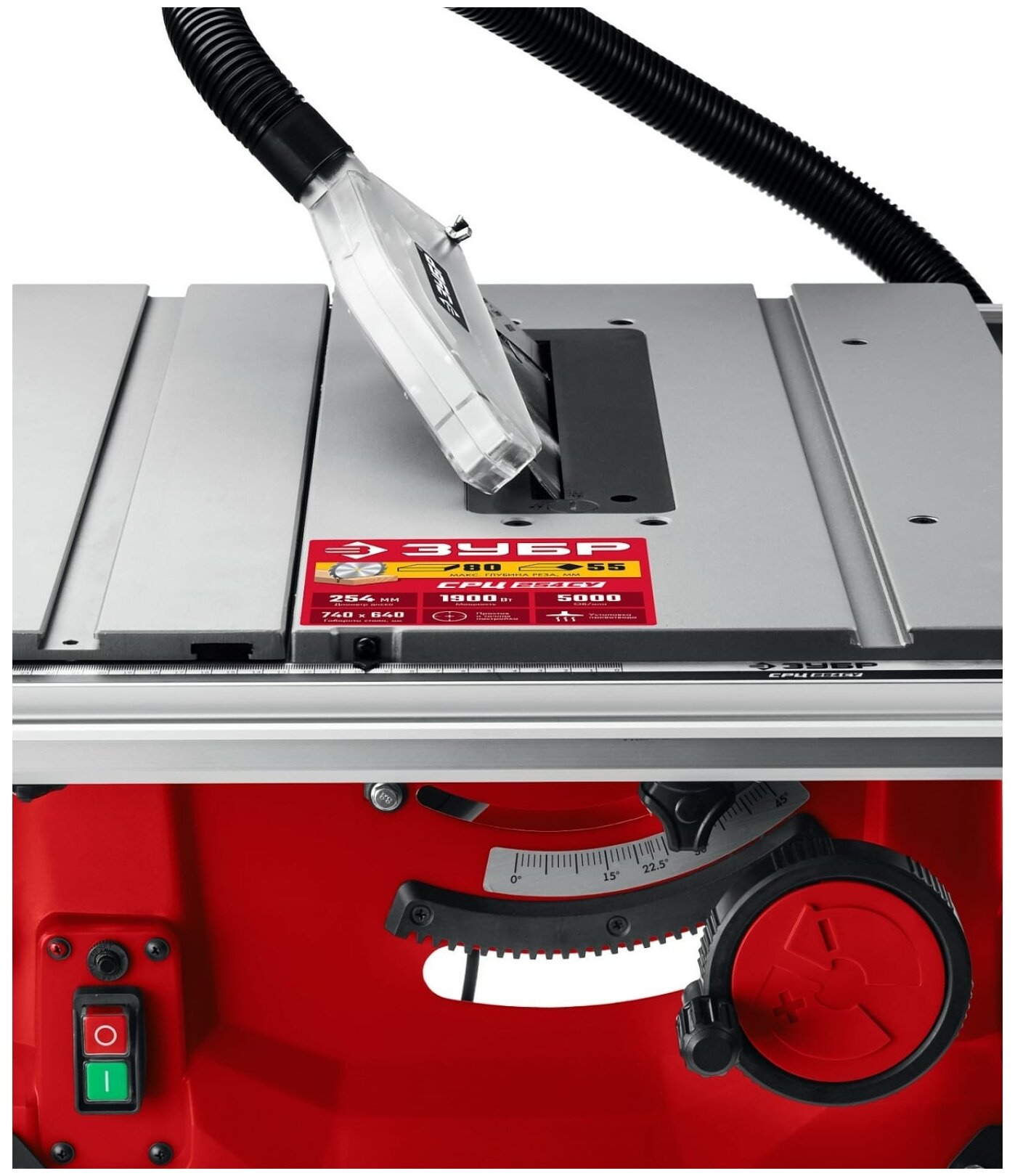 Sawing machine, power: 1900 W, cutting depth 90°: 80 mm, blade diameter: 254 mm, rotation speed: 5000 rpm, weight: 20 kg