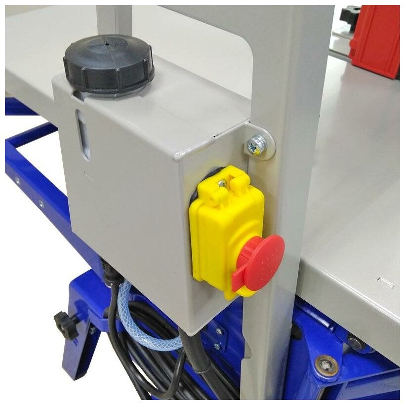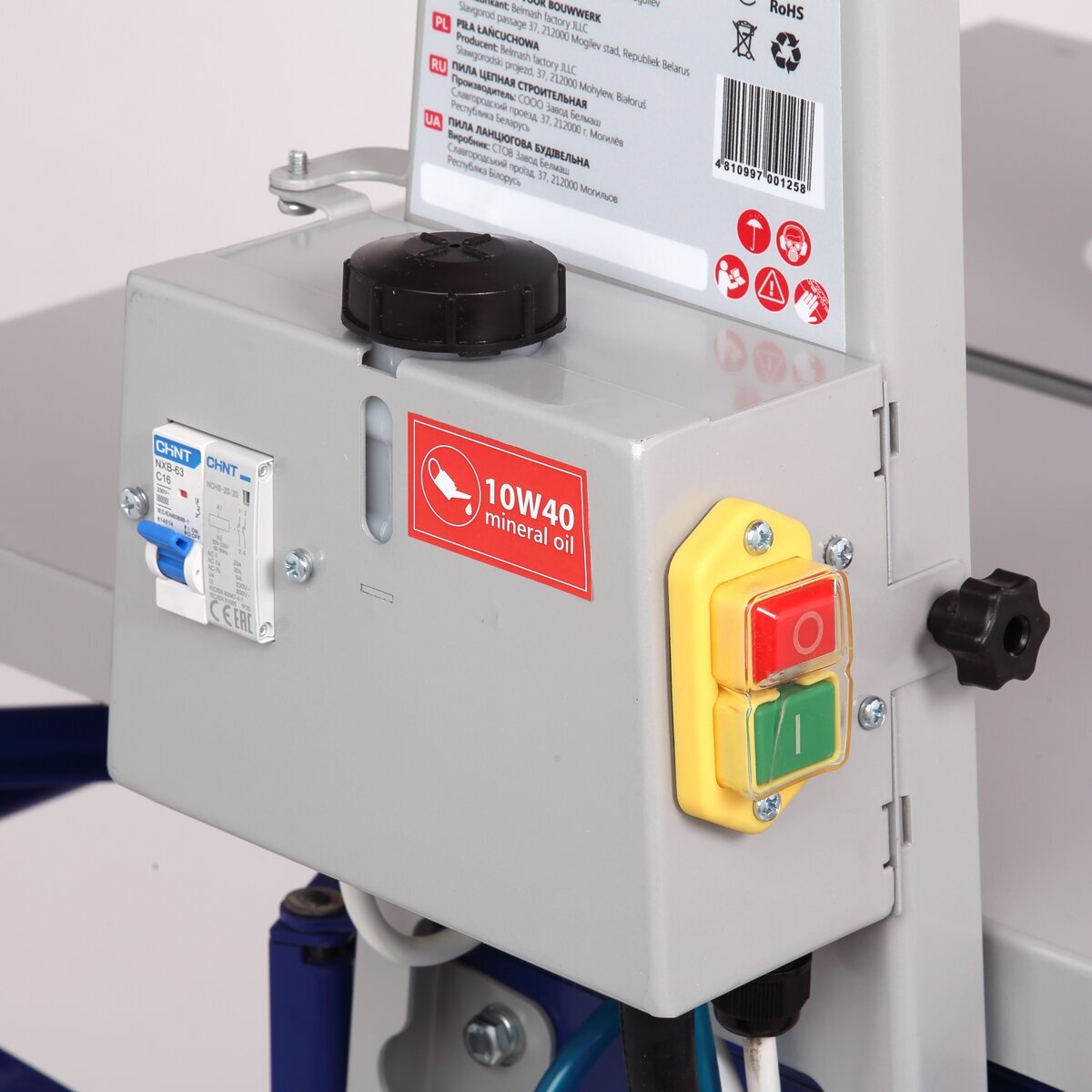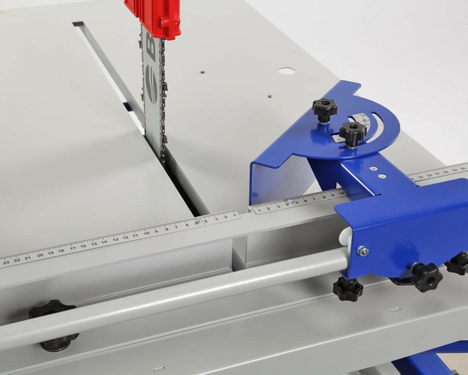 The range of cutting angles using the angular fixture -90 ÷ +90 degrees, chain characteristics 3/8", 72 links, Maximum travel of the working table 635 mm