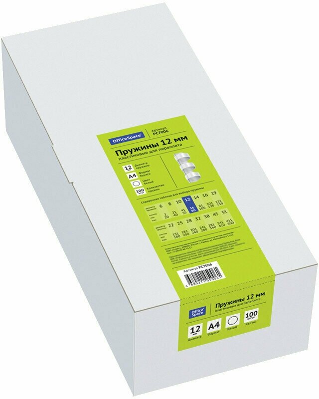 Type: spring, material: plastic, spring/ring diameter: 12mm, spring pitch: 3:1, maximum block thickness: 80 sheets