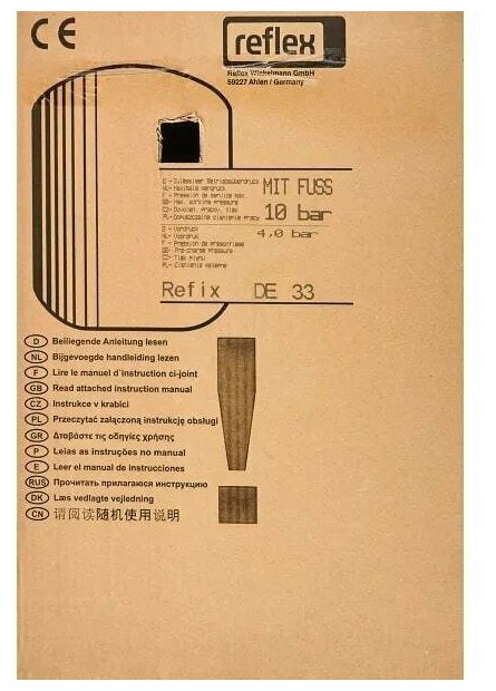 Type: hydraulic accumulator, volume: 33 l, installation: vertical, connection diameter: ¾, maximum operating pressure: 10 bar, diameter: 354 mm, height: 457 mm