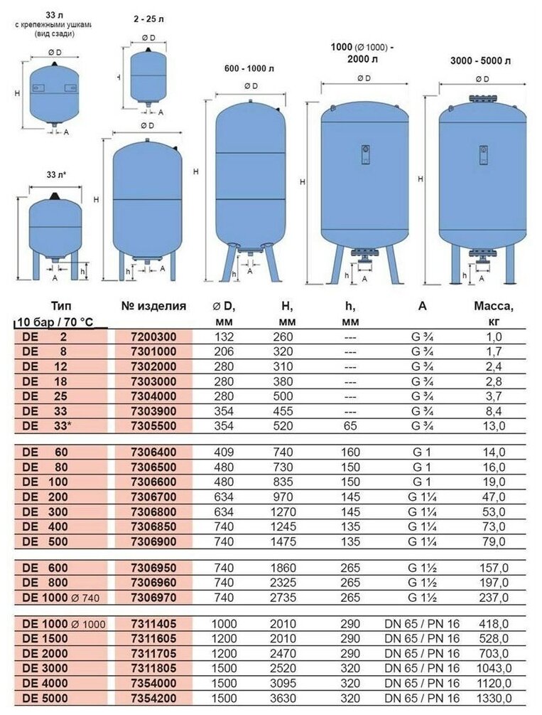 Type: hydraulic accumulator, volume: 500 l, installation: vertical, for heating