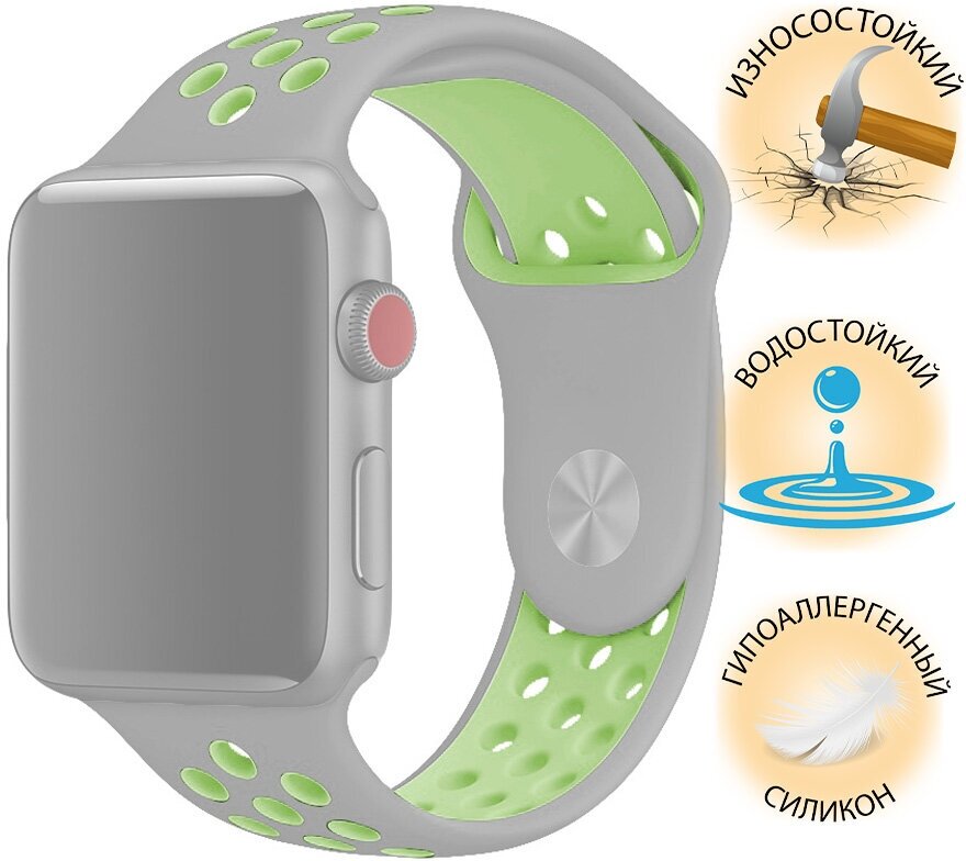Apple Watch 1/2/3/4/5 Silicone 38/40 InnoZone Vent - Grey/Lime APWTSIH38-03