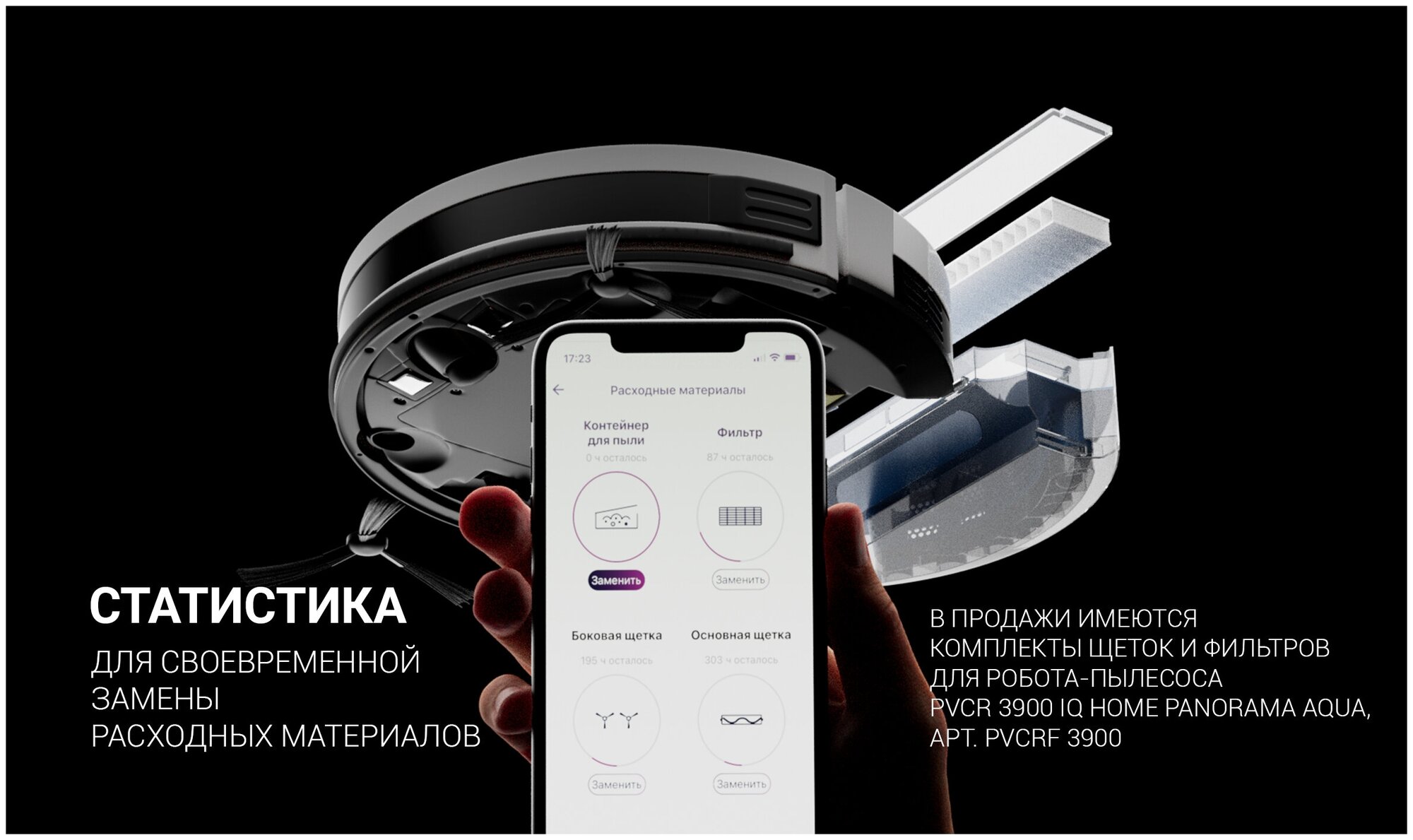 Cleaning type: wet, dry, dust container volume: 0.45 l, battery life: 120 min, control from a smartphone, controllable from a remote control, sensor type: infrared, installation on a charger: