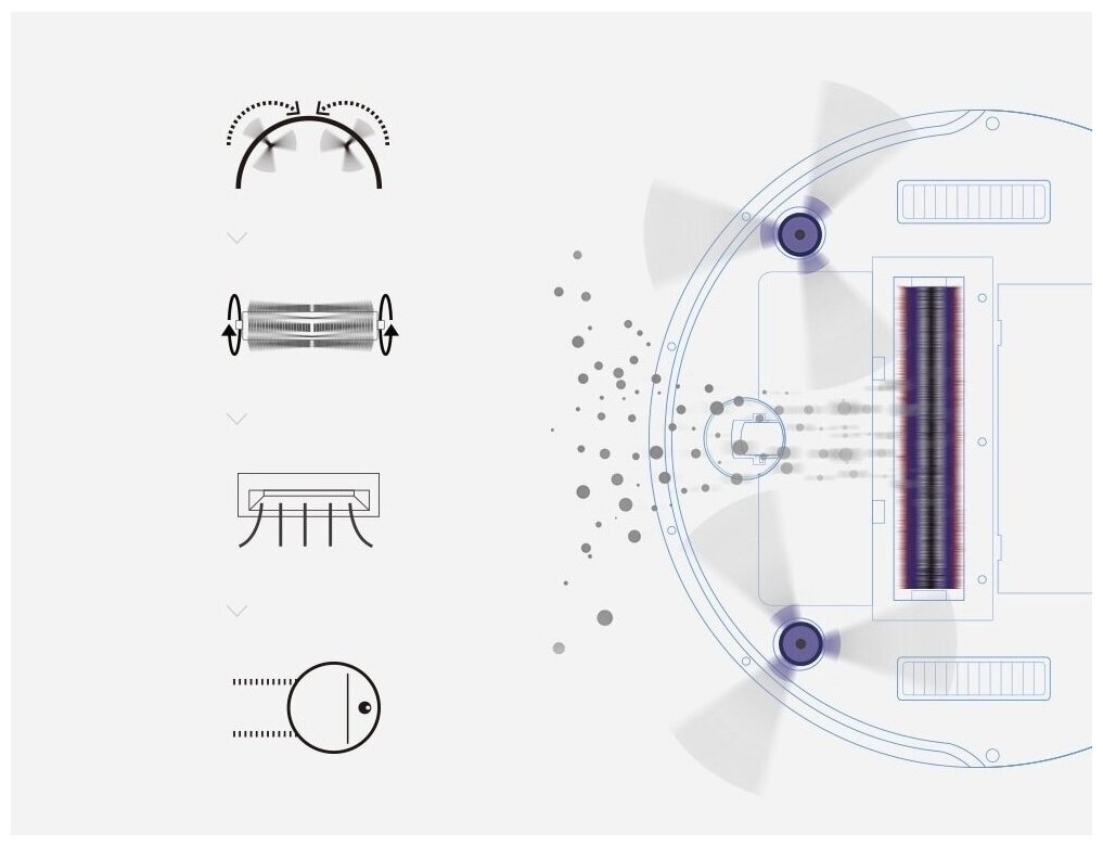 Building a map of the room, programming by days of the week, calculating the cleaning time, alarm when jamming, alarm when the battery is low