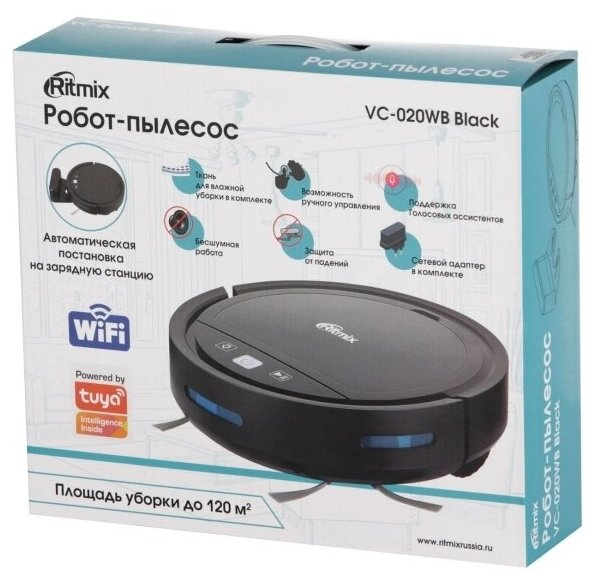 Cleaning type: wet, dry, dust container volume: 0.35 L, battery life: 120 min, Smart Home Ecosystem: Tuya Smart, smartphone control, sensor type: infrared, charger installation: auto