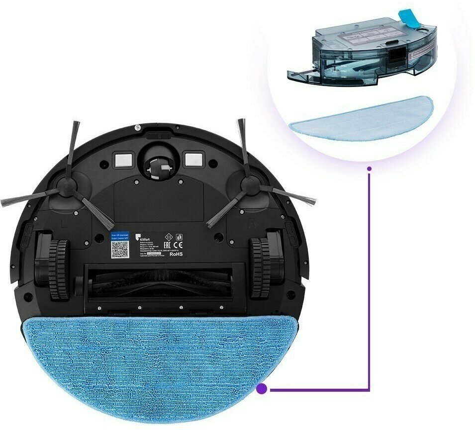 Building a map of the premises, programming by days of the week, timer, Automatic parking, robot vacuum cleaner with wet and dry cleaning