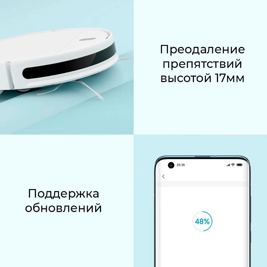 Building a map of the premises, programming by days of the week, timer, Auto on / off, Automatic parking, Horizontal parking, side brush