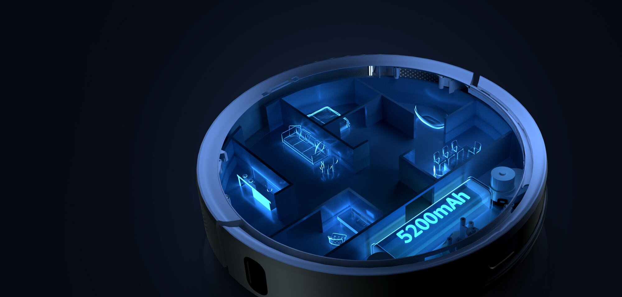 UV lamp, ionization, cleaning time limit, building a room map, programming by days of the week, cleaning time calculation, power regulator on the case, signal when the battery is low, timer