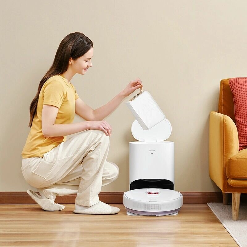 Gyroscope, height difference sensor, lidar, waste container in the base, soft bumper, Large wheels, Self-cleaning station, waste container in the base, height difference sensor