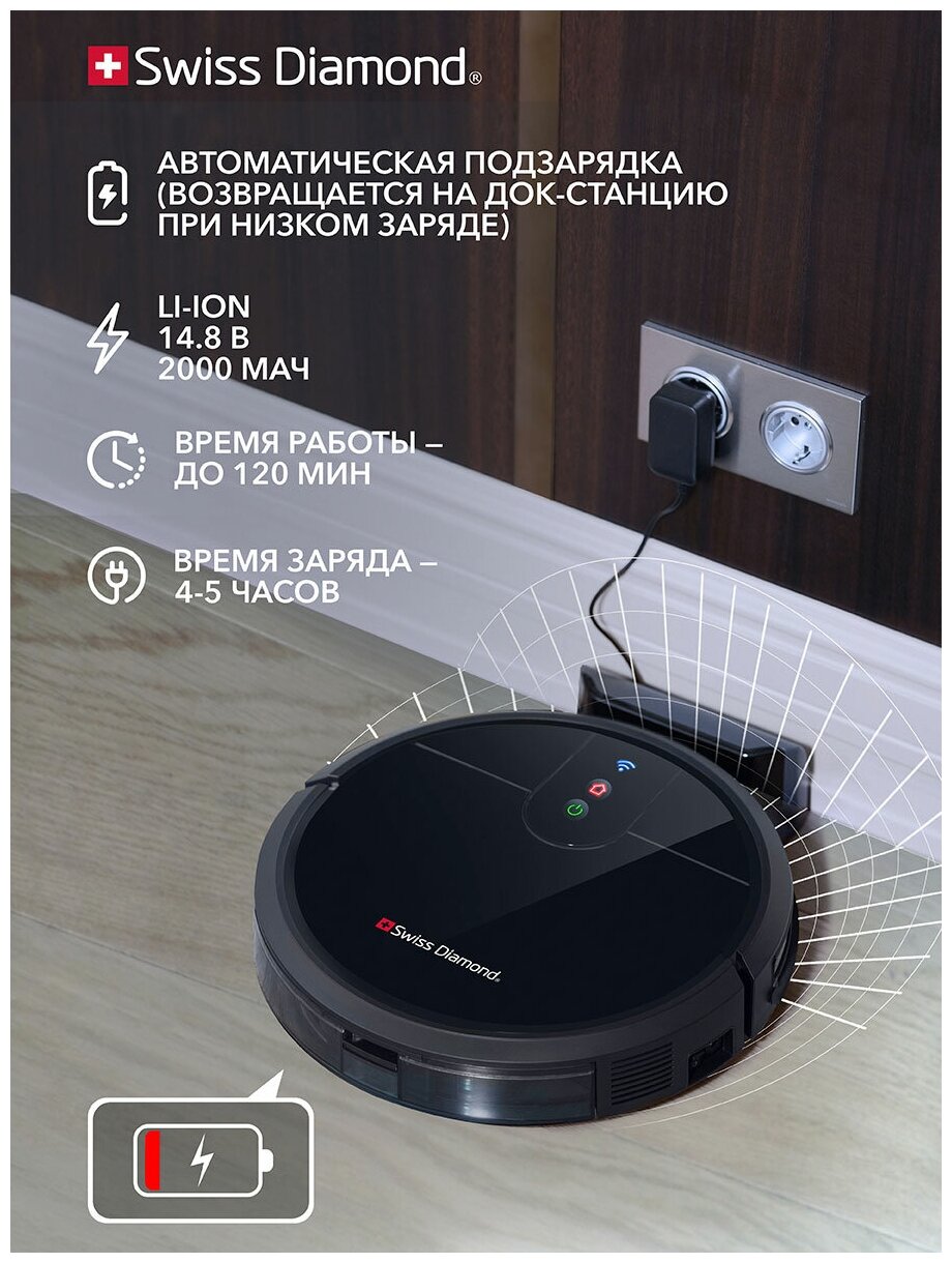 Cleaning type: wet, dry, dust container volume: 0.35 l, smartphone control, Remote control possible, sensor type: infrared, charger installation: automatic, fine filter