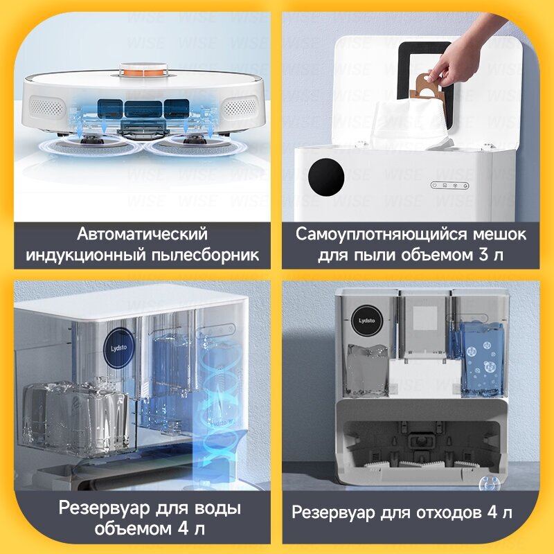 Cleaning type: wet, dry, dust container volume: 0.35 L, battery life: 90 min, Smart Home Ecosystem: Lydsto, Xiaomi Mi Home, smartphone control, charger installation: automatic, turbo brush
