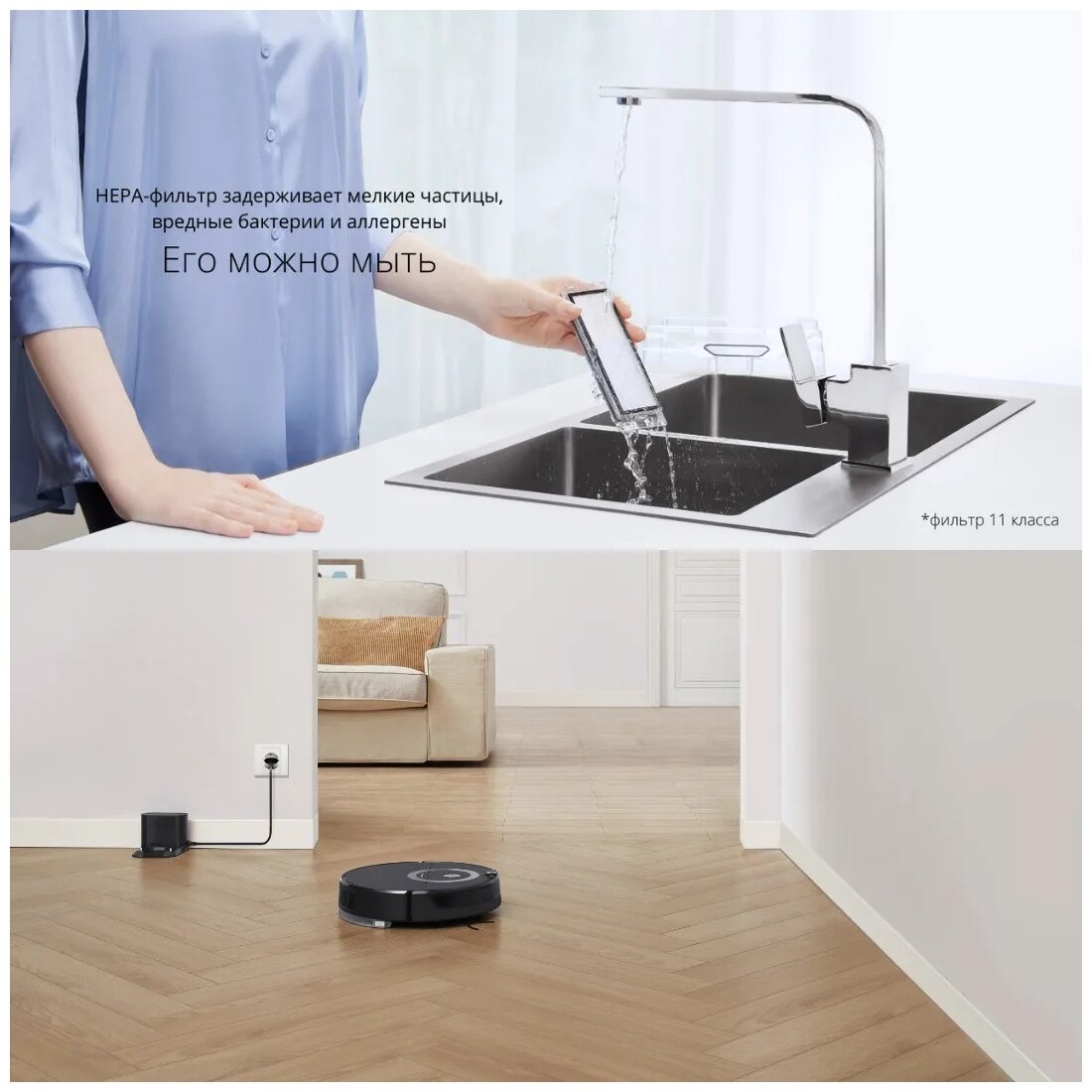 Description: Cleaning type: wet, dry, dust container volume: 0.64 L, battery life: 180 min, Smart Home Ecosystem: Google Home, Xiaomi Mi Home, Yandex Smart Home, control from a smartphone, Controllable from a remote control, type