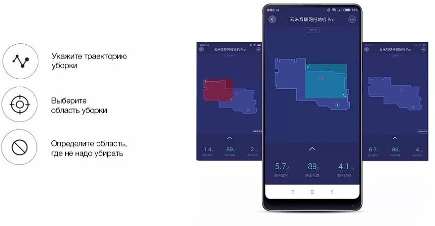 Additional functions: Building a map of the premises, calculating the time of cleaning, timer