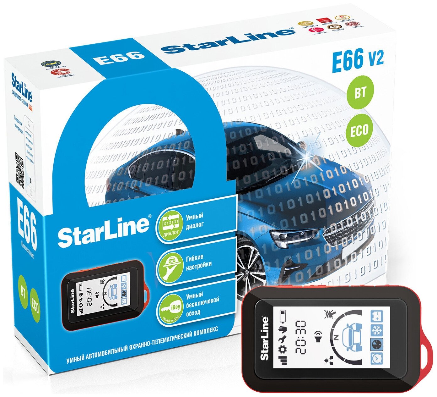 Type of communication with the key fob: one-way, security functions: auto-arming, anti-robbery, engine blocking, silent security, service functions: auto-locking of doors, zone-by-zone shutdown, vehicle search