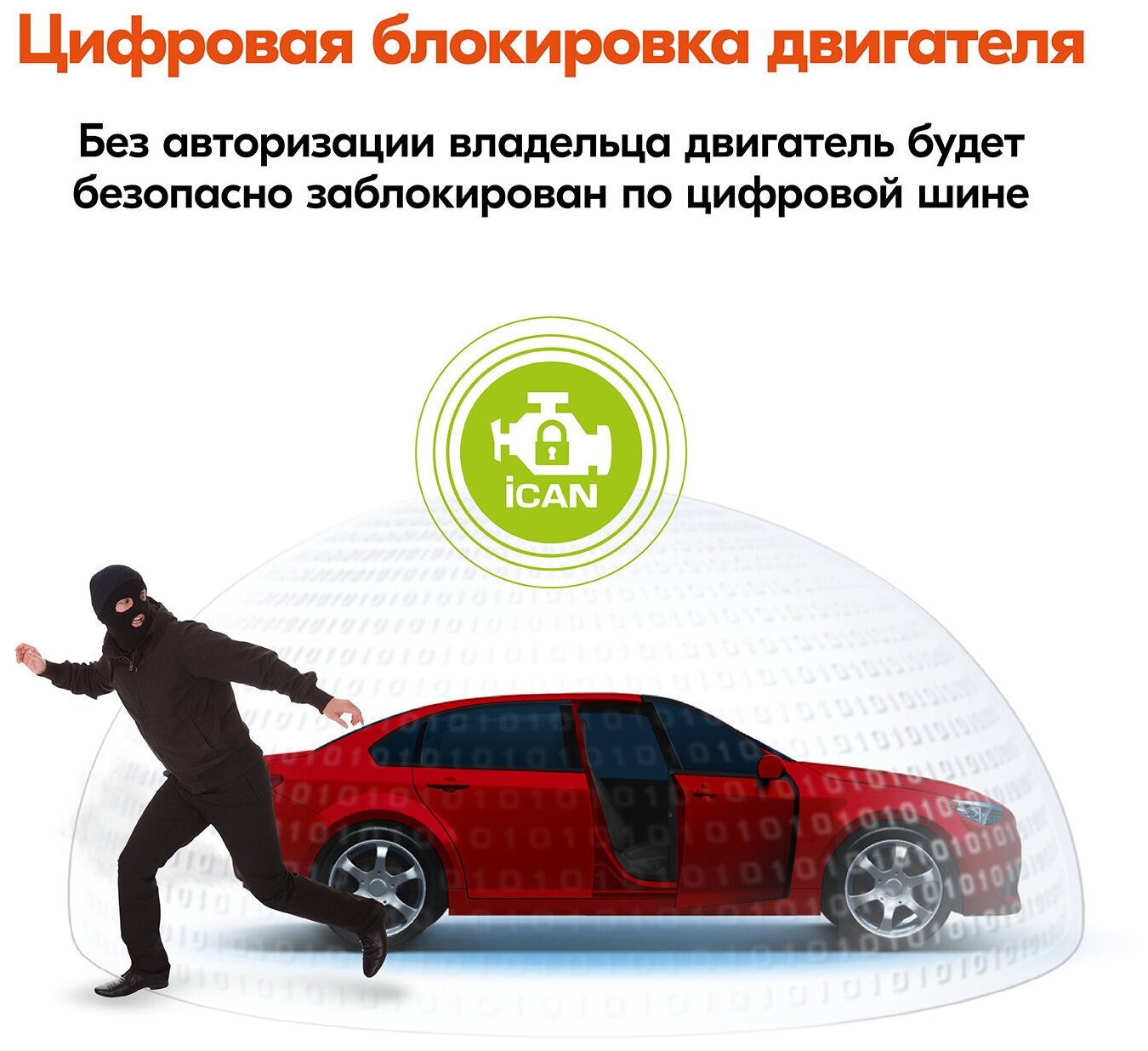 Type: anti-theft system, installation module: 3CAN+4LIN, authorization type: key fob, tag, car autostart, GSM module, hood lock
